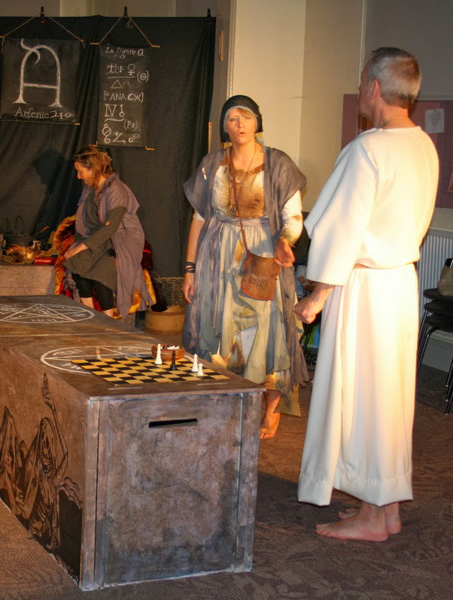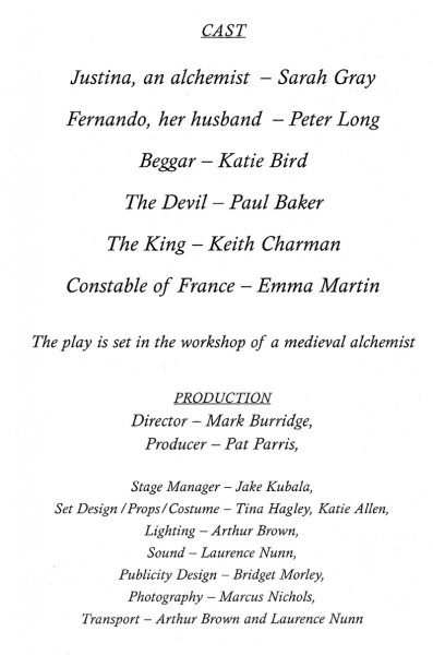 In a crypt in 14th century France Justina, an alchemist, and her husband Fernando are engaged in a hapless and frustrating search for the Philosopher’s Stone. Justina dreams that with the stone she will be able to save the world from itself and bring a new era of peace and equality (Fernando would settle for enough money for a decent meal). So when the Devil offers Justina the stone in return for her soul, the temptation is too great. Now everything she wishes for can come true, can’t it?